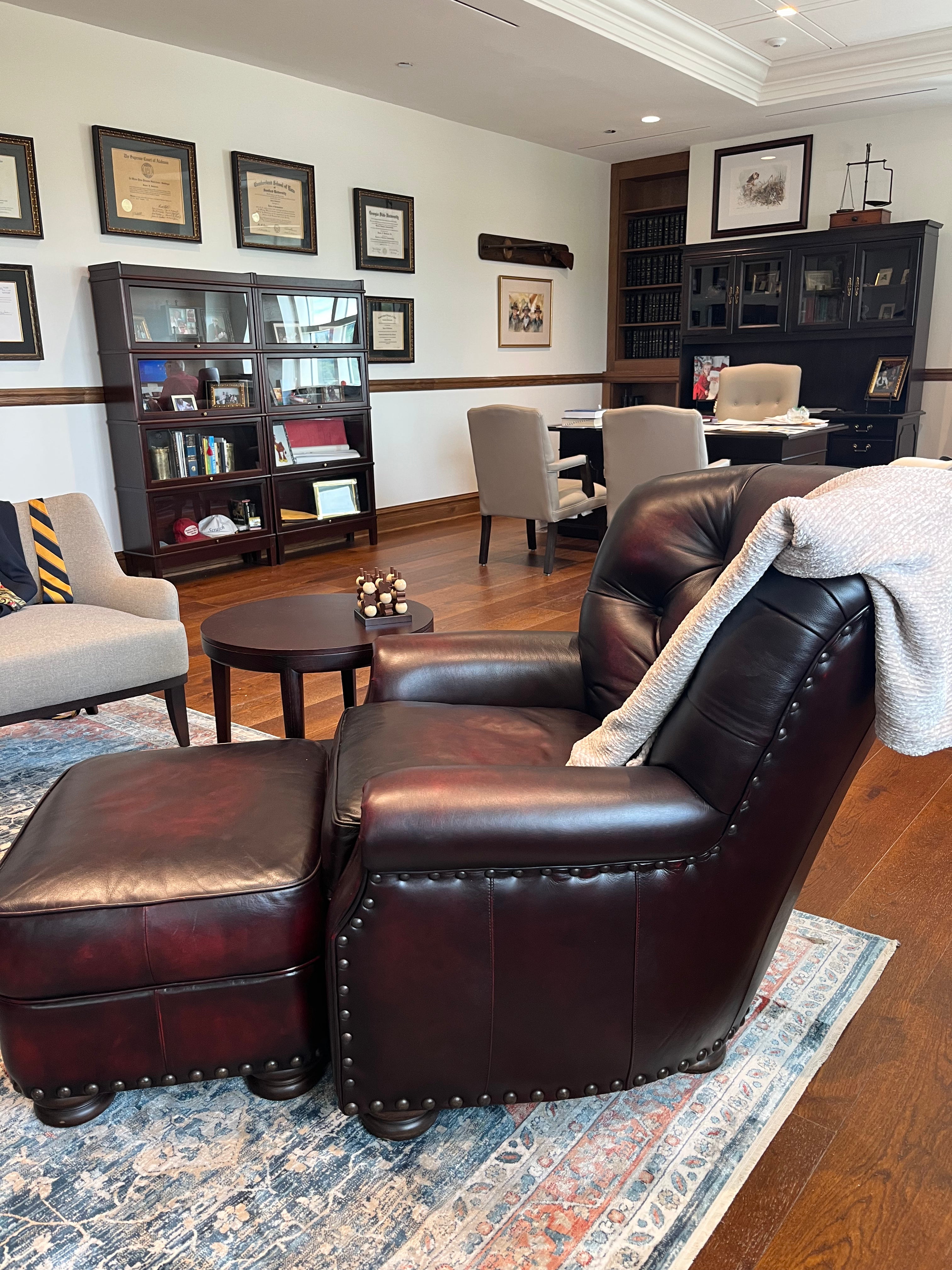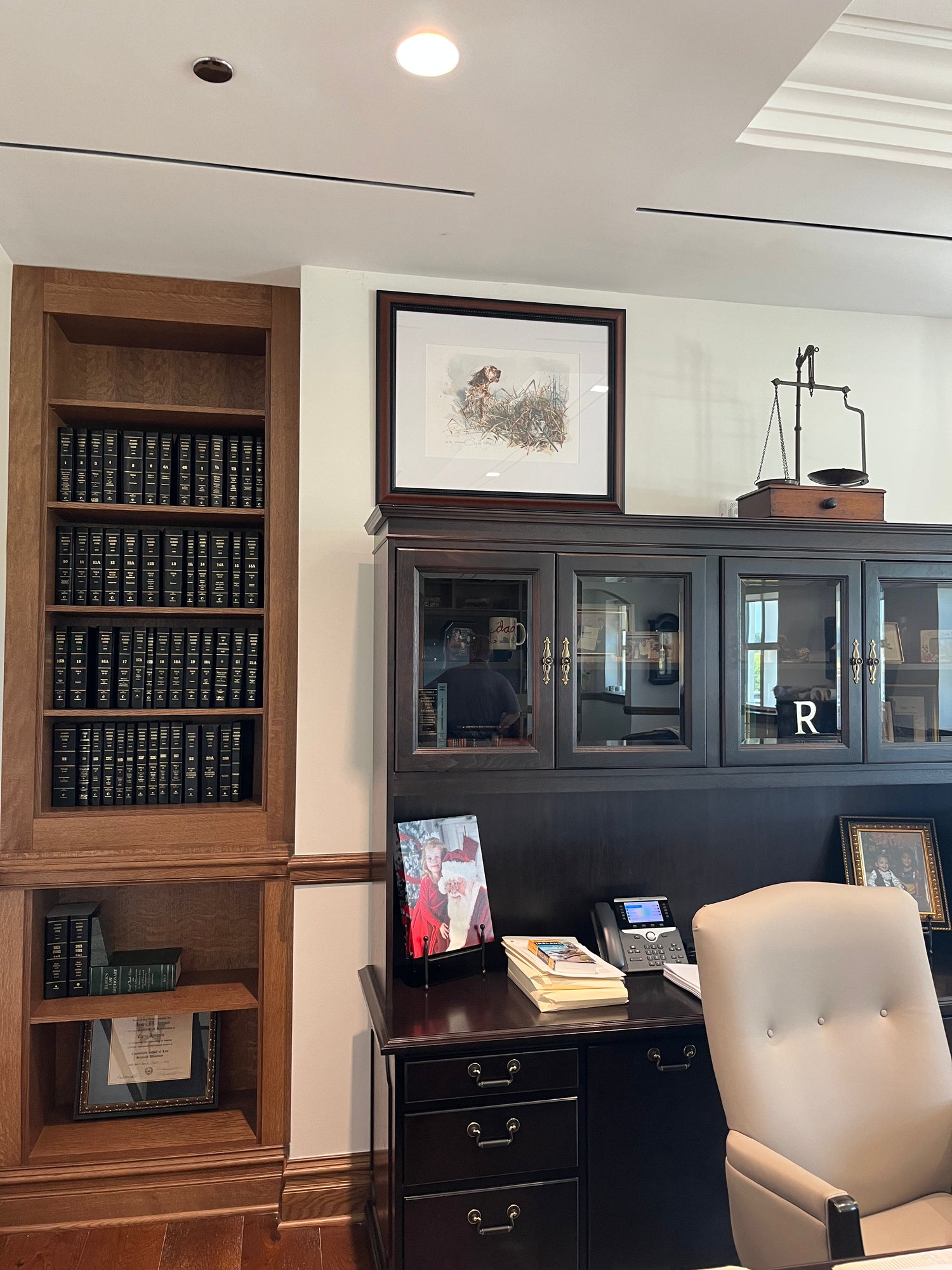 In this meaningful project, I successfully integrated my client's cherished existing pieces with fresh updates, all accomplished within budget and on schedule. This local endeavor in the new courthouse involved reimagining the layout of a private office space, along with procuring, installing, and harmoniously styling a blend of old and new art and accessories.