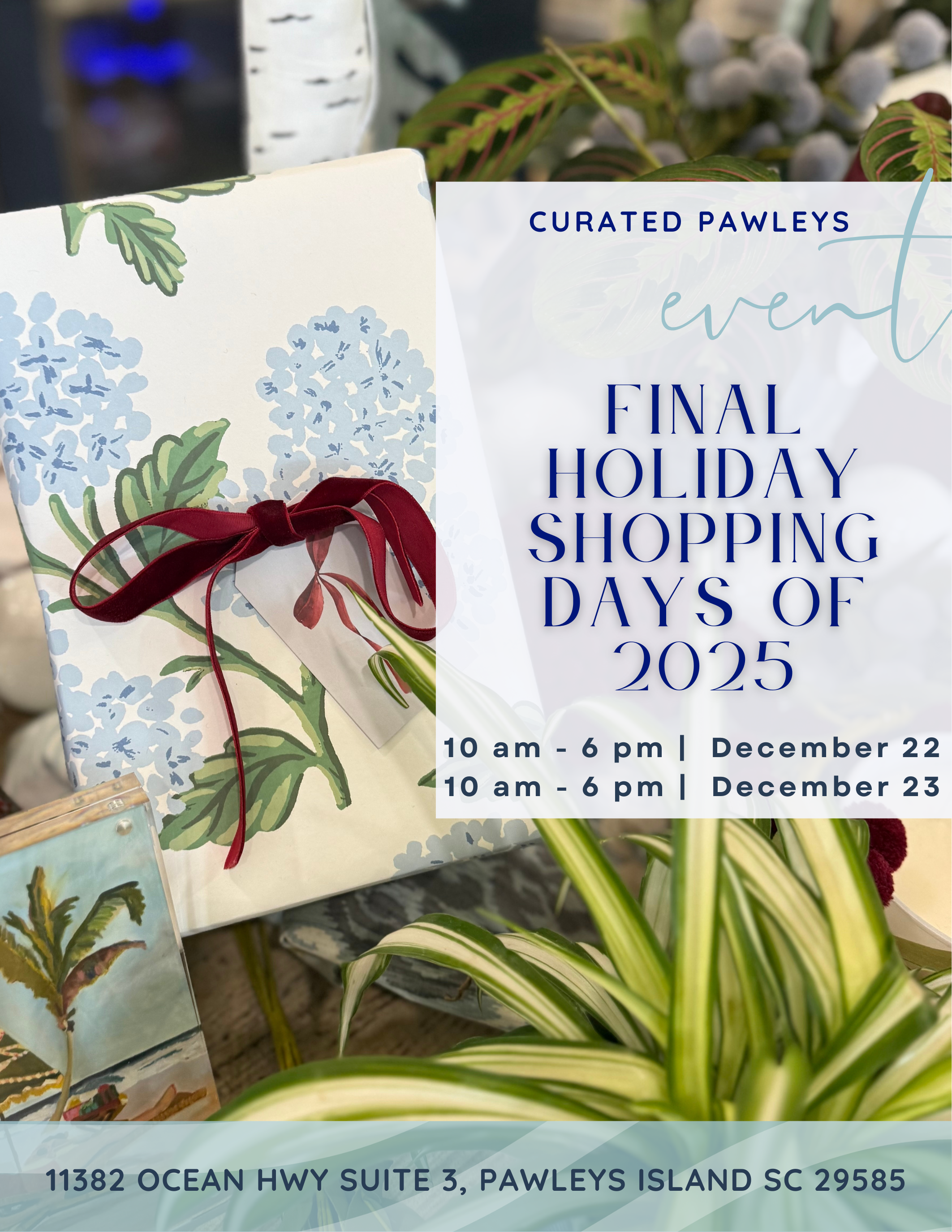 Join us for Handpicked Finds, Wrapped to Go — a festive drop-in event where you can create thoughtful gift bags for the special people in your life.Curated Pawleys will be closed 12/24-1/2 to enjoy time with family + friends.