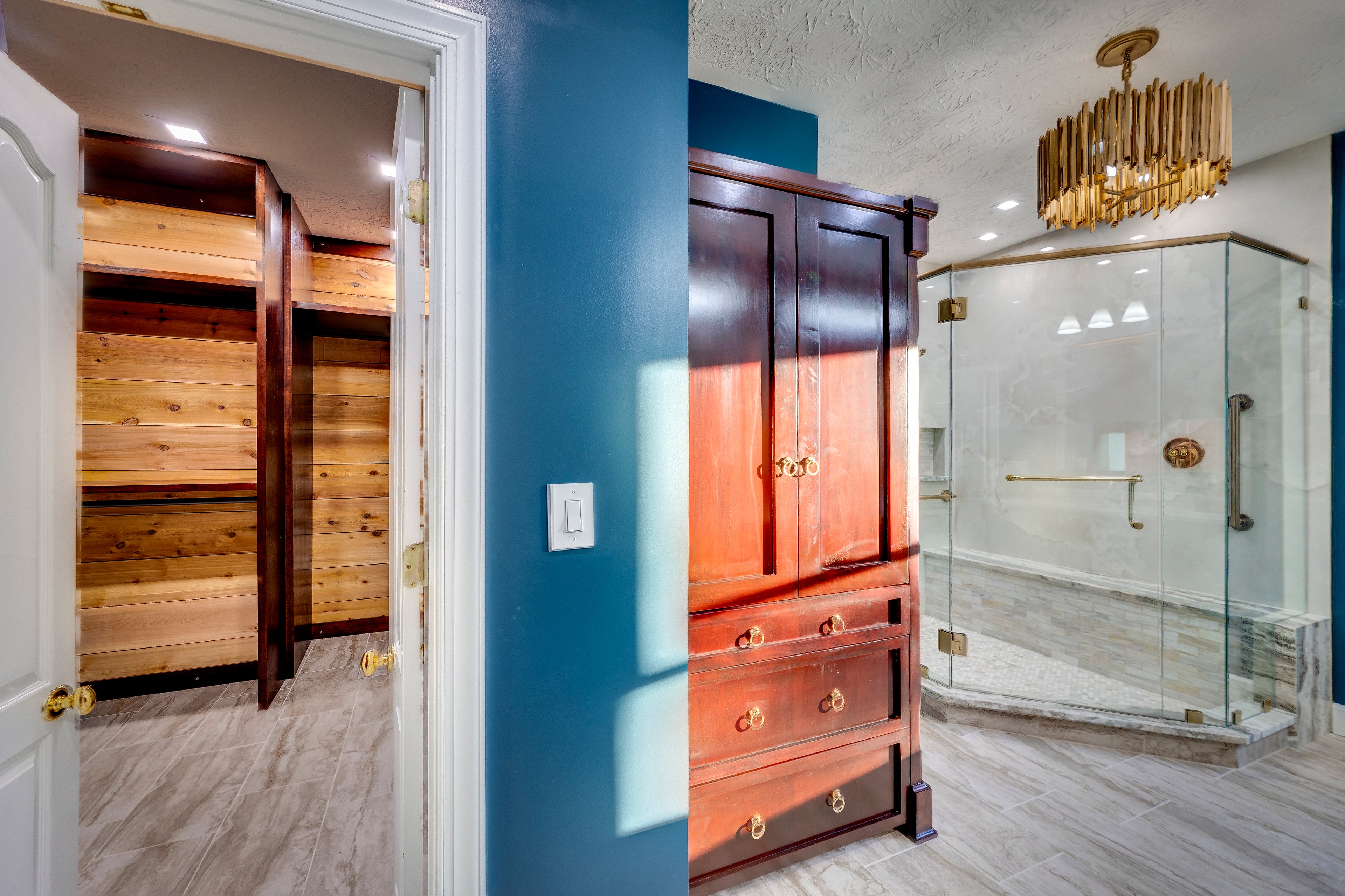 This bathroom and closet renovation was a complete transformation, designed for both function and beauty. By removing the bulky corner tub, we created space for a larger, more accessible shower—enhancing comfort, practicality, and ease of use. The reconfigured layout opens up the room, making it feel more spacious and inviting.