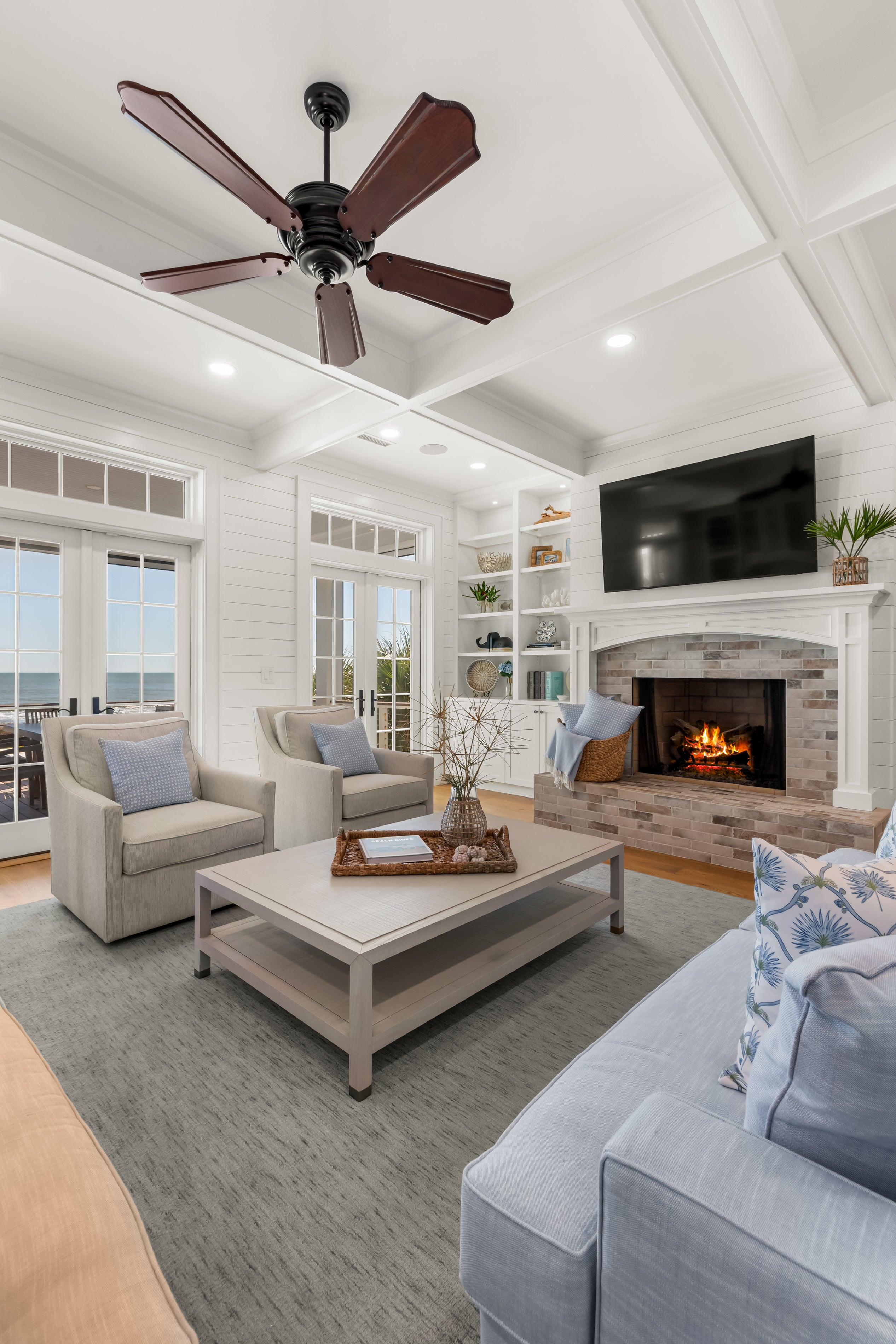 Designed as a serene coastal retreat, The Oceanfront Hangout blends elevated style with family-friendly function. Performance fabrics, extra-deep sofas, and durable construction make the space perfect for relaxing, reconnecting, and settling in for cozy end-of-day naps after time spent on the shore. Swivel chairs offer effortless flexibility—turning easily toward lively conversation or toward the stunning ocean views just beyond the doors.